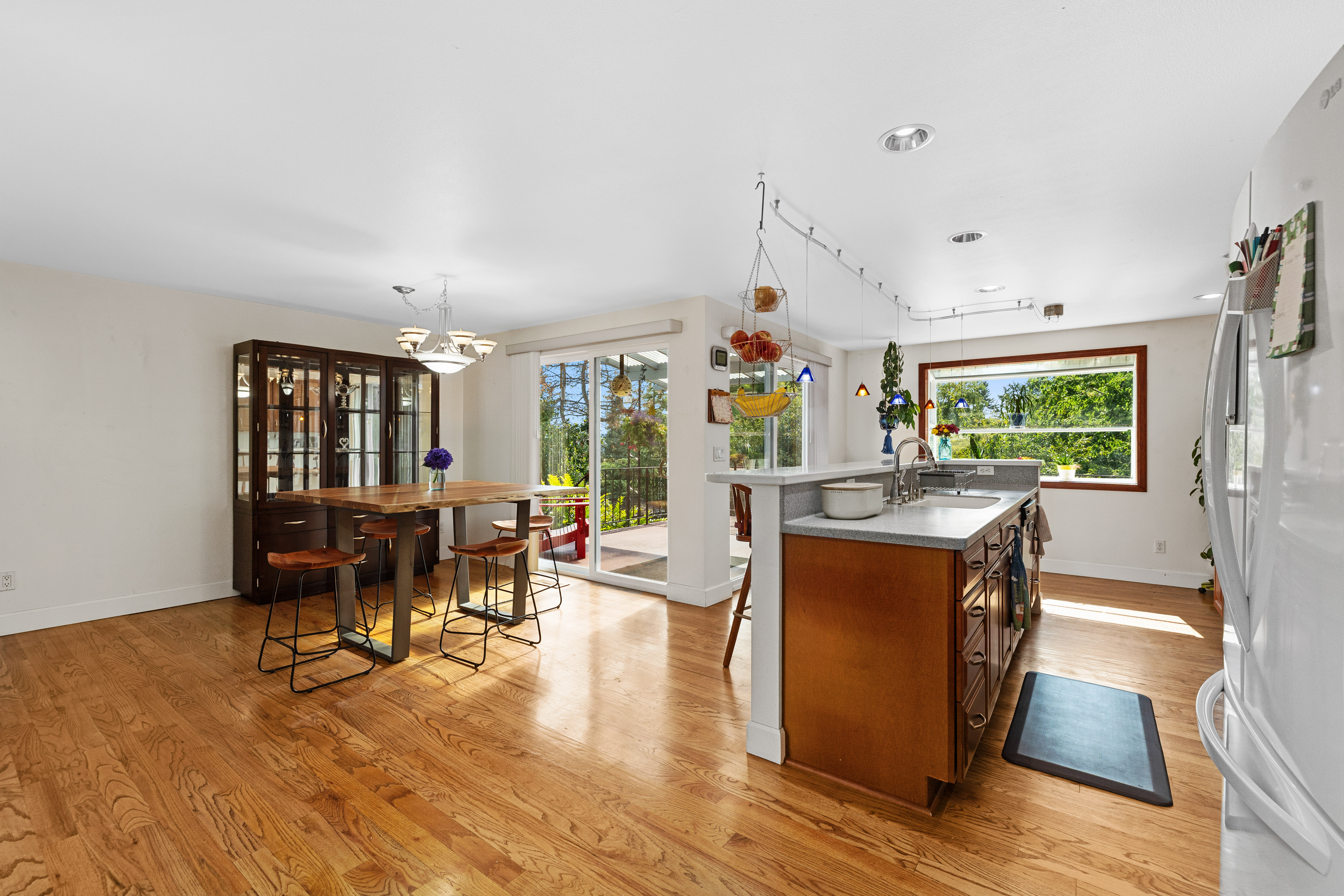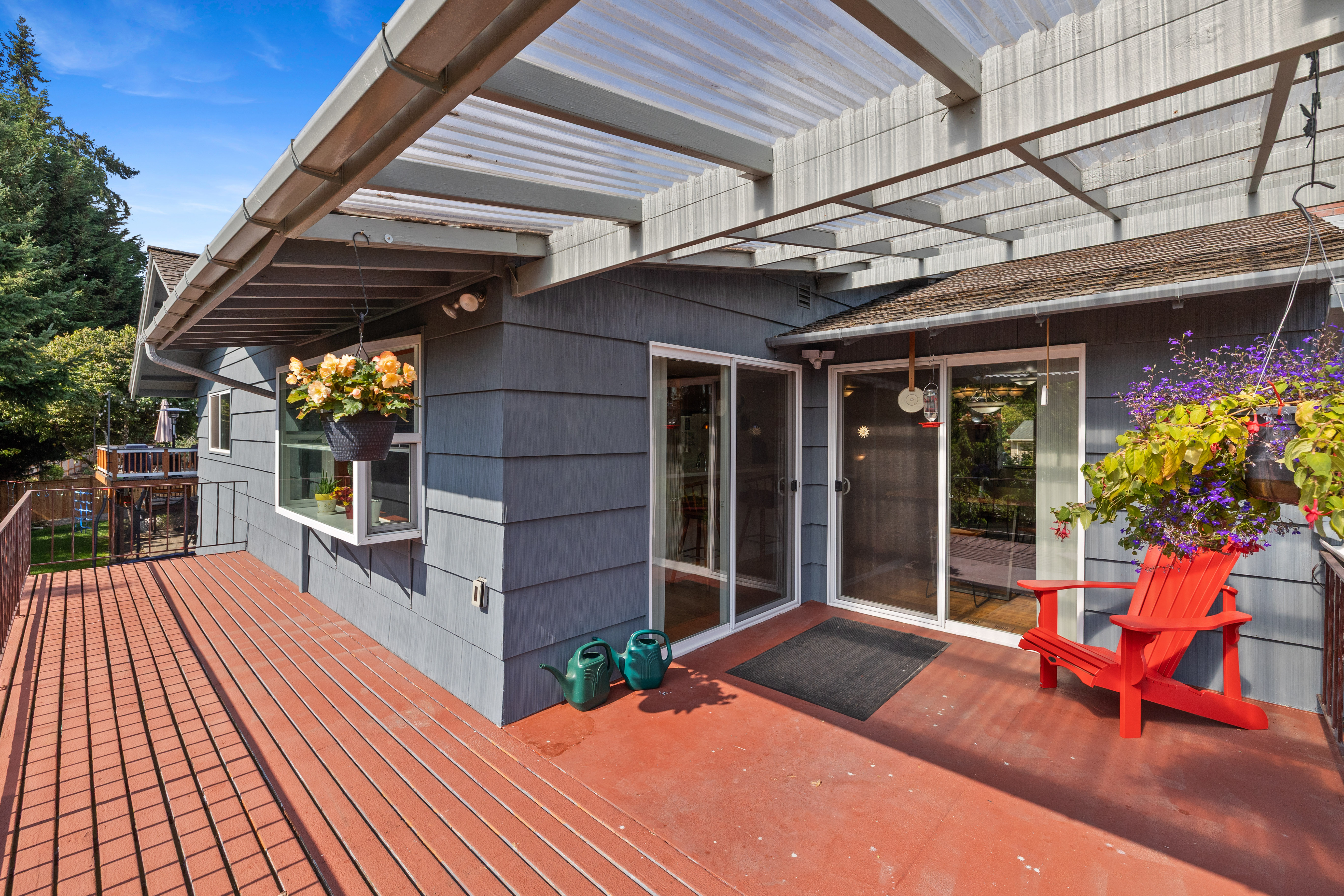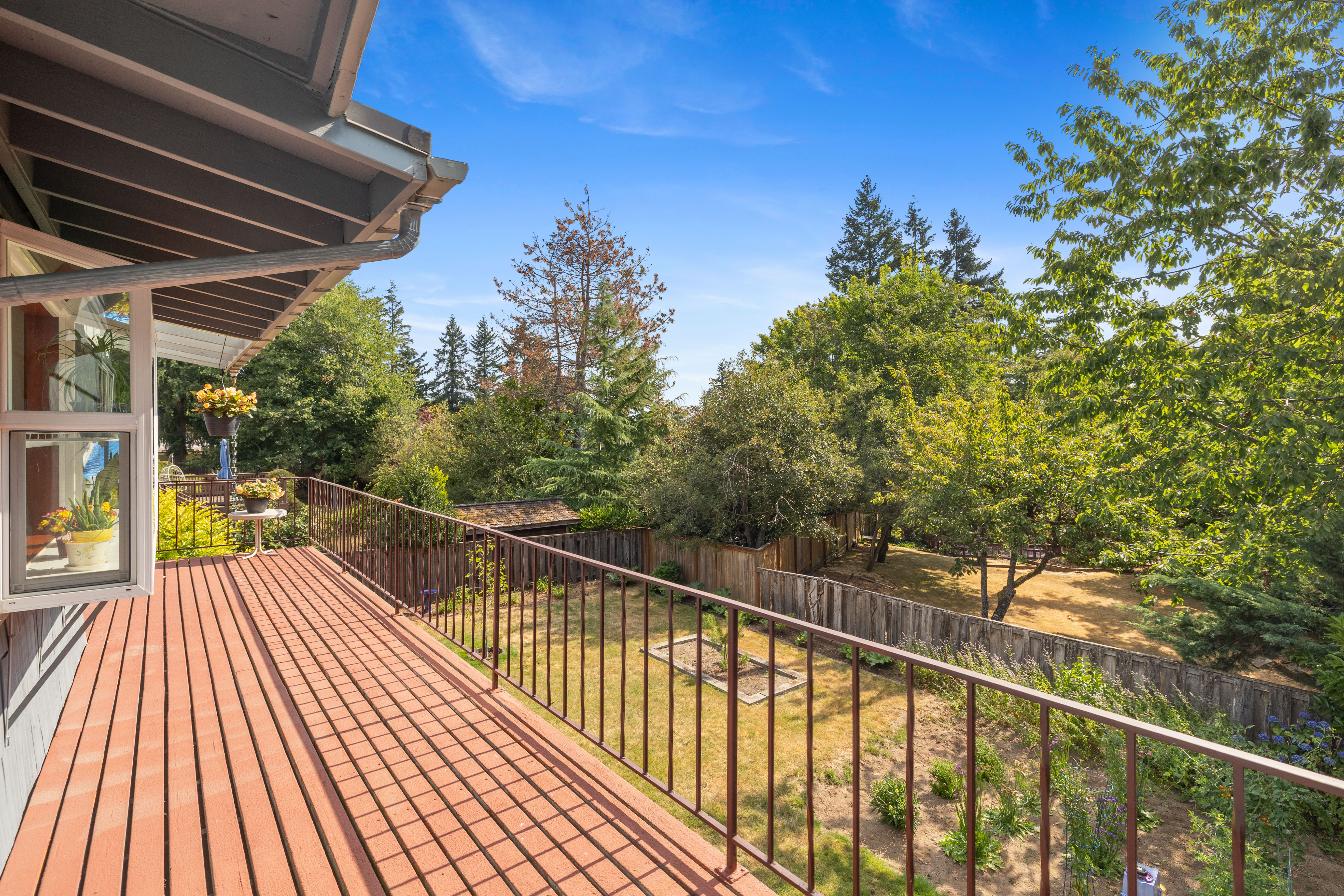 Welcome to this spacious, highly sought-after Lochmoor gem. The open floor plan features an updated kitchen with an eating bar, pantry, and garden window. Enjoy a cozy fireplace in the living room and seamless indoor-outdoor flow from the dining area to the partially covered, wrap around deck. The oversized primary suite boasts a private, remodeled bathroom.  With 4 additional bedrooms and two living spaces, this home offers plenty of floor plan flexibility. Outside, find the fully fenced yard with mature landscaping, garden space, and two storage sheds. All appliances included. Just 3 miles to Idylwood Beach Park on Lake Sammamish, close to golfing, top-rated Bellevue schools, and easy access to I-90, 405, and 520.